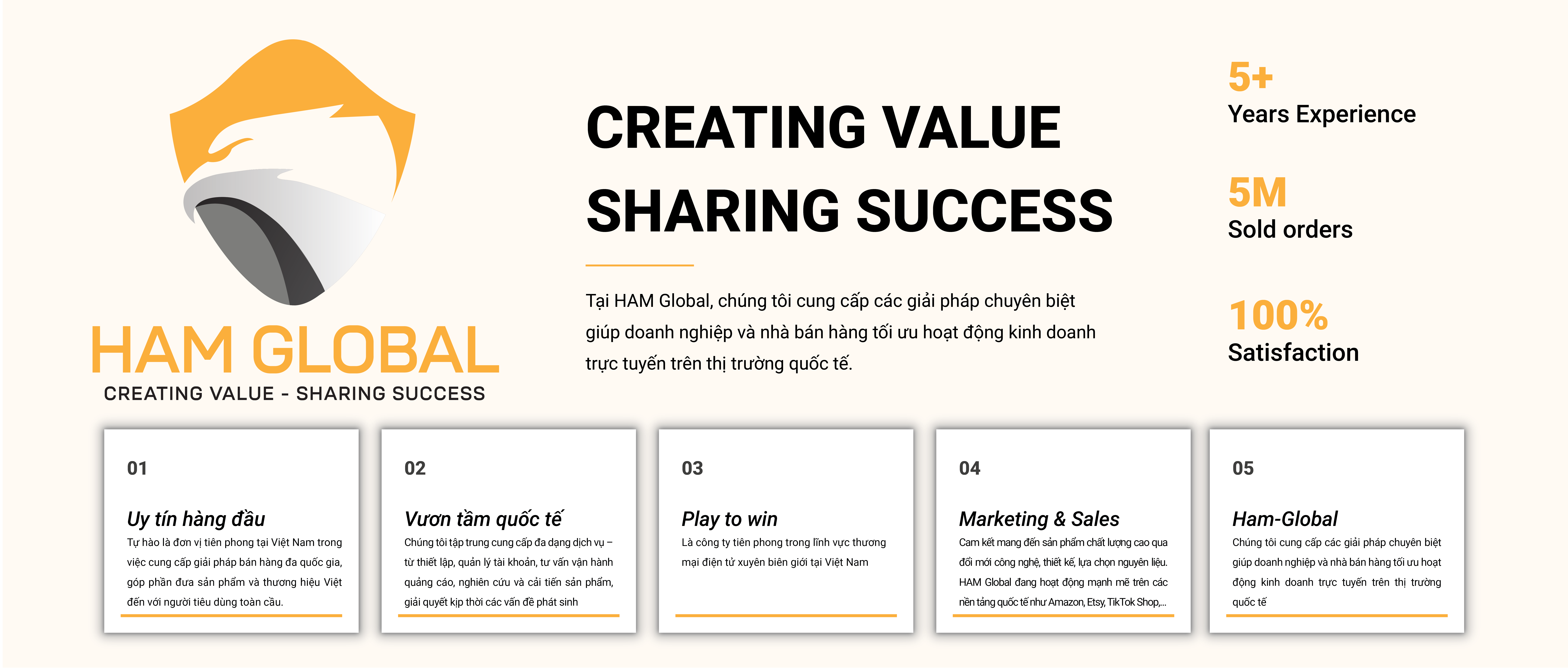 Tại HAM Global, chúng tôi tập trung cung cấp đa dạng dịch vụ – từ thiết lập, quản lý tài khoản, tư vấn vận hành quảng cáo, nghiên cứu và cải tiến sản phẩm, giải quyết kịp thời các vấn đề phát sinh. Dịch vụ của chúng tôi không chỉ là kết quả của sự đầu tư nghiêm túc về kiến thức, thời gian và tâm huyết, mà còn phản ánh tinh thần đổi mới và khát vọng vươn ra thị trường quốc tế. Với kinh nghiệm vận hành thực tế trên nhiều thị trường và tầm nhìn toàn cầu, đội ngũ HAM Global tự tin đồng hành cùng bạn trong hành trình tạo dựng hệ sinh thái thương hiệu bền vững – nơi sản phẩm Việt có thể cạnh tranh sòng phẳng trên bản đồ thương mại thế giới.
